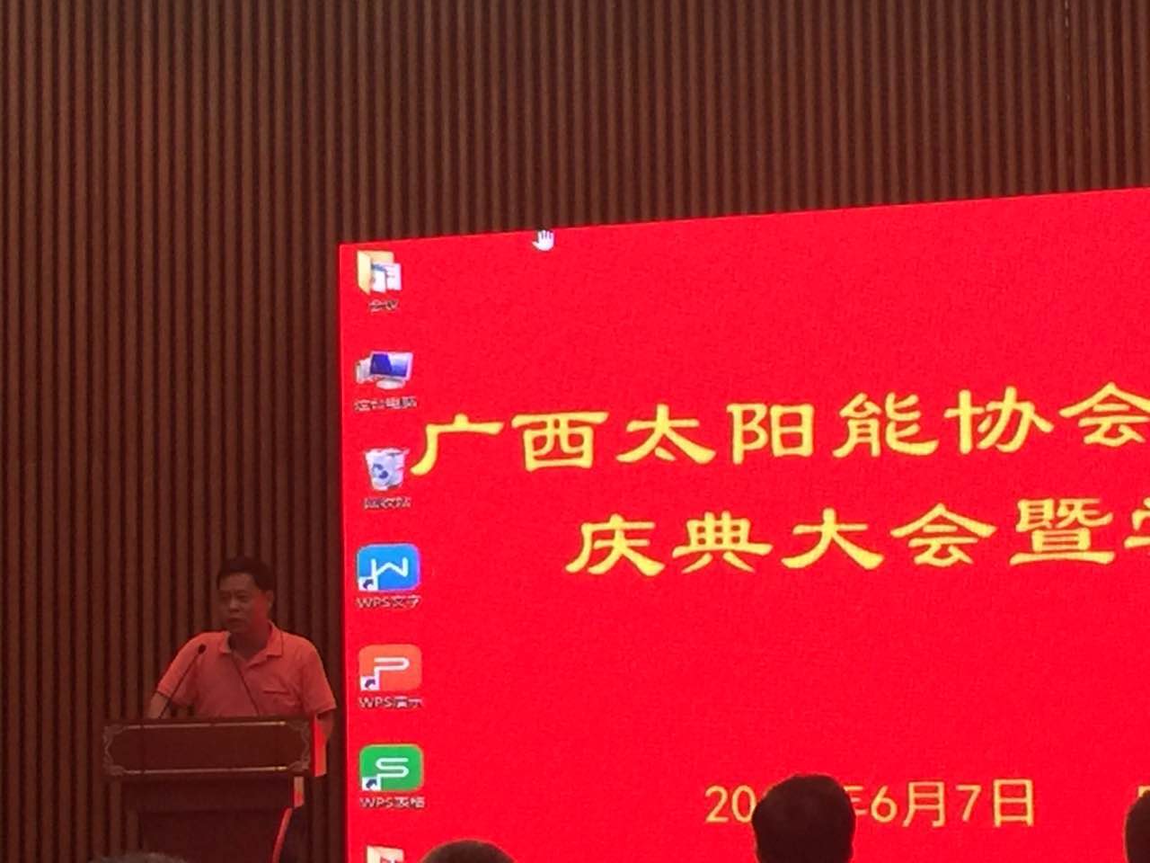 2016 年(nian)6月6-8日(ri),光(guang)譜(pu)公司(si)寧家川(chuan)董事(shi)長受(shou)邀參加了廣(guang)西太陽能(neng)協會(hui)(hui)成立五周年(nian)慶典大(da)會(hui)(hui)暨學術年(nian)會(hui)(hui),并(bing)在年(nian)會(hui)(hui)上進行了熱情(qing)洋(yang)溢的演講。同時,對廣(guang)西太陽能(neng)市(shi)場進行了調研(yan),與(yu)太陽能(neng)行業的同行們開展了專業的交流。