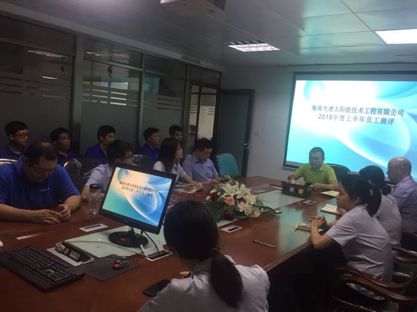 2018 年(nian)(nian)7月16日上(shang)(shang)(shang)午(wu)(wu),海南光譜公(gong)(gong)司(si)(si)在公(gong)(gong)司(si)(si)會(hui)議(yi)室(shi)舉行(xing)了(le)2018年(nian)(nian)度上(shang)(shang)(shang)半年(nian)(nian)員(yuan)工(gong)(gong)測評(ping)大會(hui),公(gong)(gong)司(si)(si)全體員(yuan)工(gong)(gong)參加(jia)了(le)這次會(hui)議(yi),所有員(yuan)工(gong)(gong)均(jun)對其他(ta)員(yuan)工(gong)(gong)進(jin)行(xing)了(le)評(ping)分(fen);當日下午(wu)(wu),還召開(kai)了(le)上(shang)(shang)(shang)半年(nian)(nian)工(gong)(gong)作及(ji)測評(ping)工(gong)(gong)作總(zong)結(jie)大會(hui),公(gong)(gong)司(si)(si)領導(dao)對上(shang)(shang)(shang)半年(nian)(nian)工(gong)(gong)作及(ji)員(yuan)工(gong)(gong)測評(ping)進(jin)行(xing)了(le)總(zong)結(jie)、分(fen)析(xi),并給測評(ping)成績前(qian)三名員(yuan)工(gong)(gong)頒發了(le)榮(rong)譽證書及(ji)獎金;晚上(shang)(shang)(shang)公(gong)(gong)司(si)(si)全體員(yuan)工(gong)(gong)在酒店參加(jia)聚餐活動。