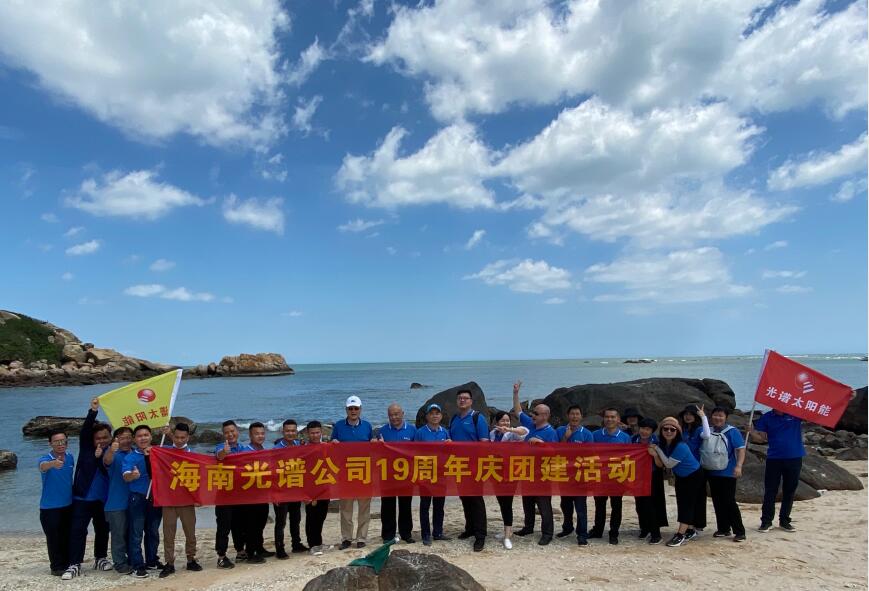 2020年5月(yue)15日,正值海南光譜(pu)太(tai)陽能技(ji)術工程有(you)限公司成立19周年,為(wei)進一步加強公司團(tuan)隊文化建設、增強團隊(dui)凝(ning)聚力、增進員工(gong)間(jian)的交流與合作,海南光譜公司全體員(yuan)工在寧董事長的帶領下,開展為期一(yi)天的19周年慶員工團建活動。