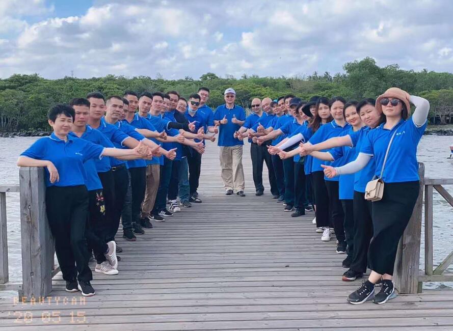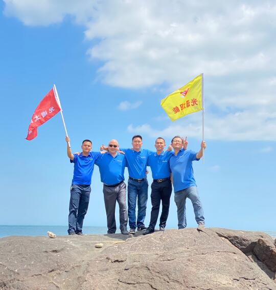 海南光(guang)譜太陽能技術工(gong)程有限公司在文昌(chang)八門(men)灣景區全體(ti)合(he)影留念