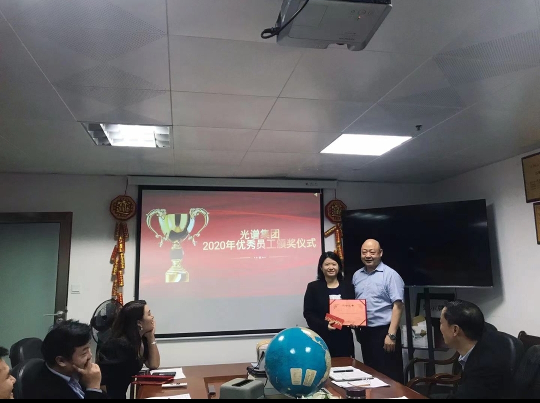 經過民主評比,測評結果于2021年2月8日上午進行宣布,在優秀員工頒獎儀式上,公司副董事長賀元為2020年度優秀員工劉瑩頒發了獎金和榮譽證書。
