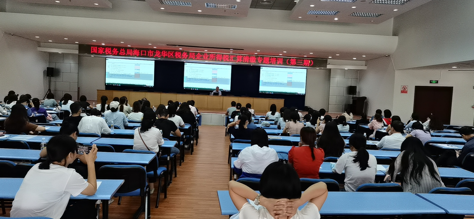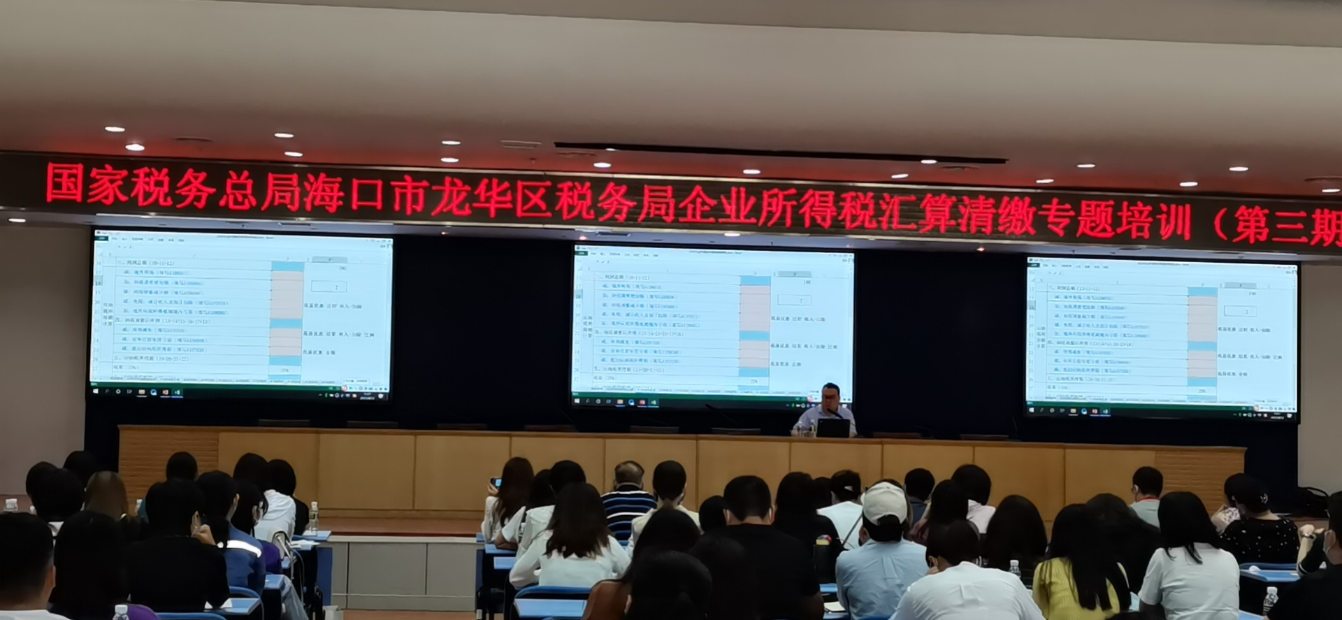 2021年04月12日(星期一)下午,海口市稅務局在民聲東路2號國家稅務總局海口市龍華區稅務局二樓多功能報告廳舉辦了第三期企業所得稅匯算清繳專題培訓,海南光譜公司財務部全體員工參加了此次培訓會議。