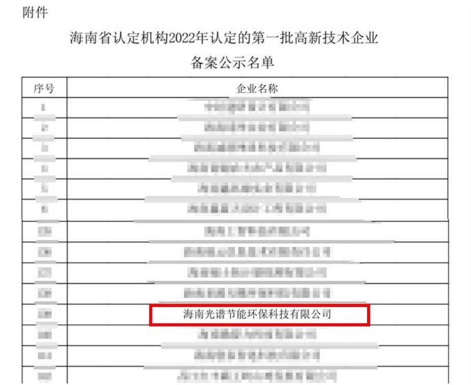 2022年10月18日,全國高新技術企業認定管理工作領導小組辦公室發布《關于對海南省認定機構2022年認定的第一批高新技術企業進行備案公示的通知》,在《海南省認定機構2022年認定的第一批高新技術企業進行備案公示名單》中,我公司成功通過此次第一批認定的高新技術企業備案公示。