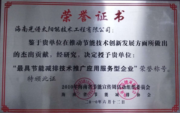 榮譽證書—最具節能減排技術推廣應用服務型企業