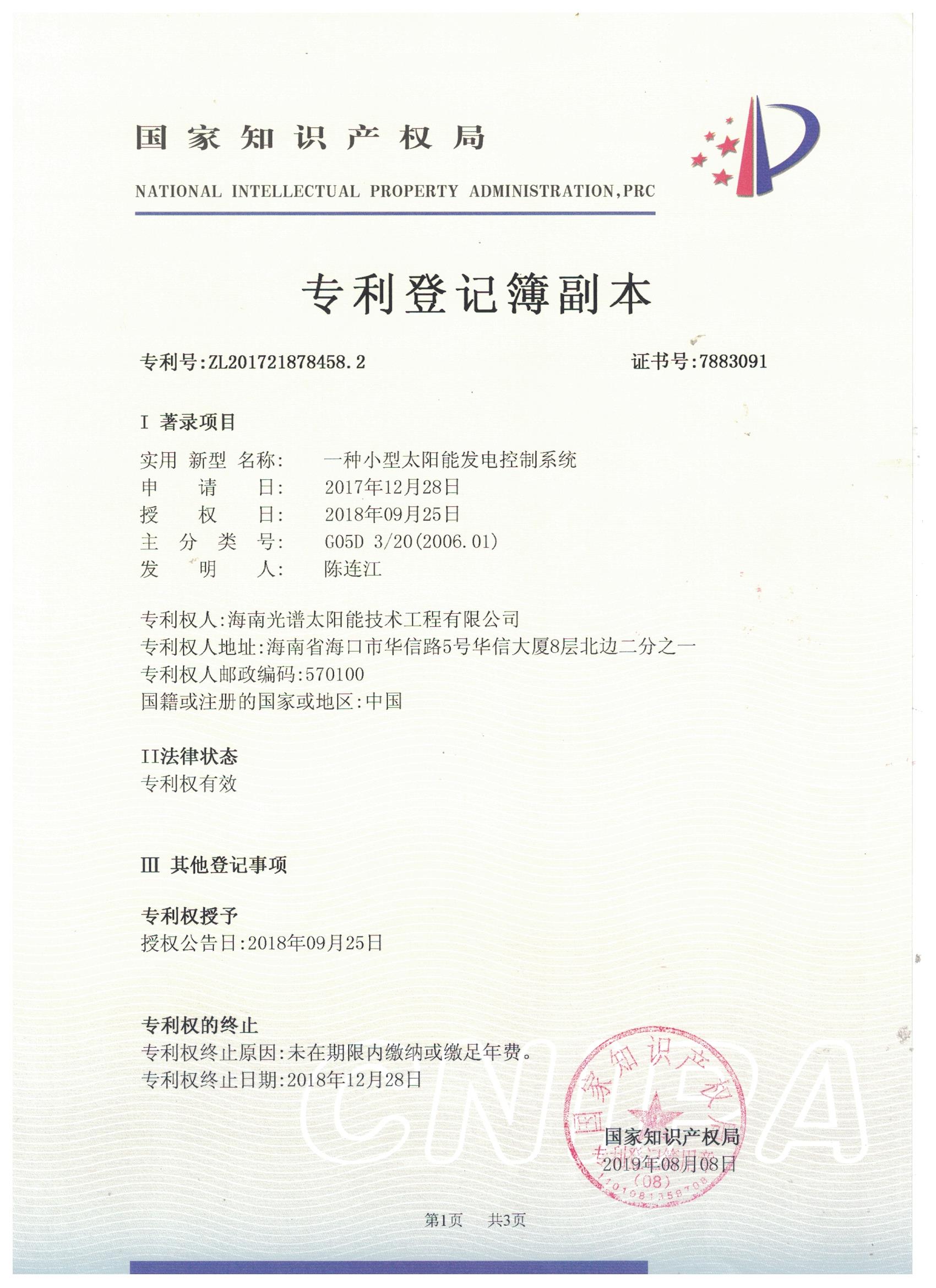 下一篇:實用新型專利 一種太陽能和風能混合發電蔬菜大棚