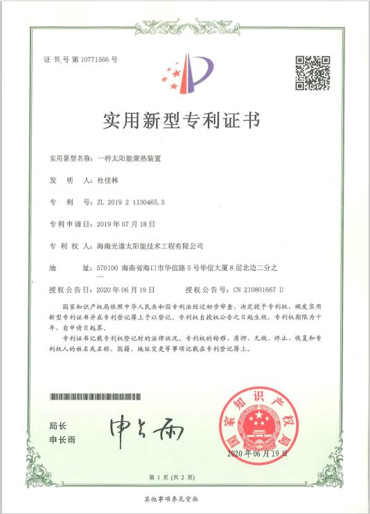 上一篇:實用新型專利 一種太陽能真空集熱管