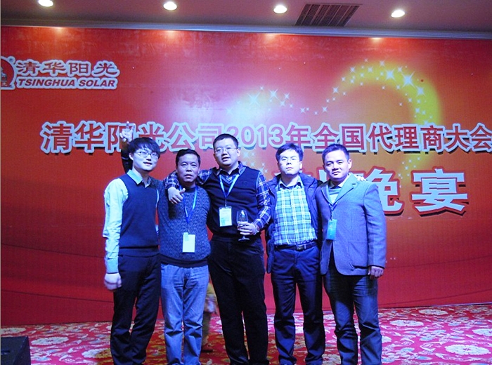 2012年12月(yue)23號(hao)、24號(hao),清(qing)華(hua)陽光(guang)公司(si)(si)2013年全國(guo)代理商大會在河南省(sheng)駐(zhu)馬店(dian)市隆(long)重召開,清(qing)華(hua)陽光(guang)公司(si)(si)董事長李艷和(he)、總裁吳振一(yi)和(he)來自全國(guo)各地(di)的近300名清(qing)華(hua)陽光(guang)代理商參加(jia)了會議。同(tong)時,慶祝(zhu)清(qing)華(hua)陽光(guang)公司(si)(si)駐(zhu)馬店(dian)工業區太陽能平板(ban)生產線全面(mian)投入生產。
