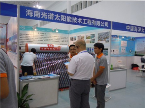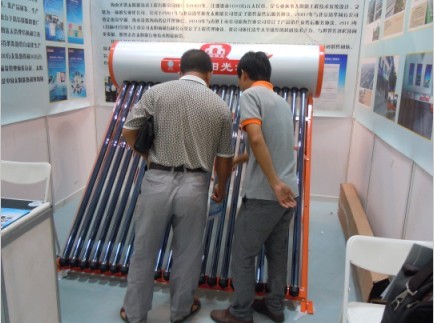 我司員(yuan)工給客(ke)戶介紹清華陽(yang)光太陽(yang)能(neng)熱水器