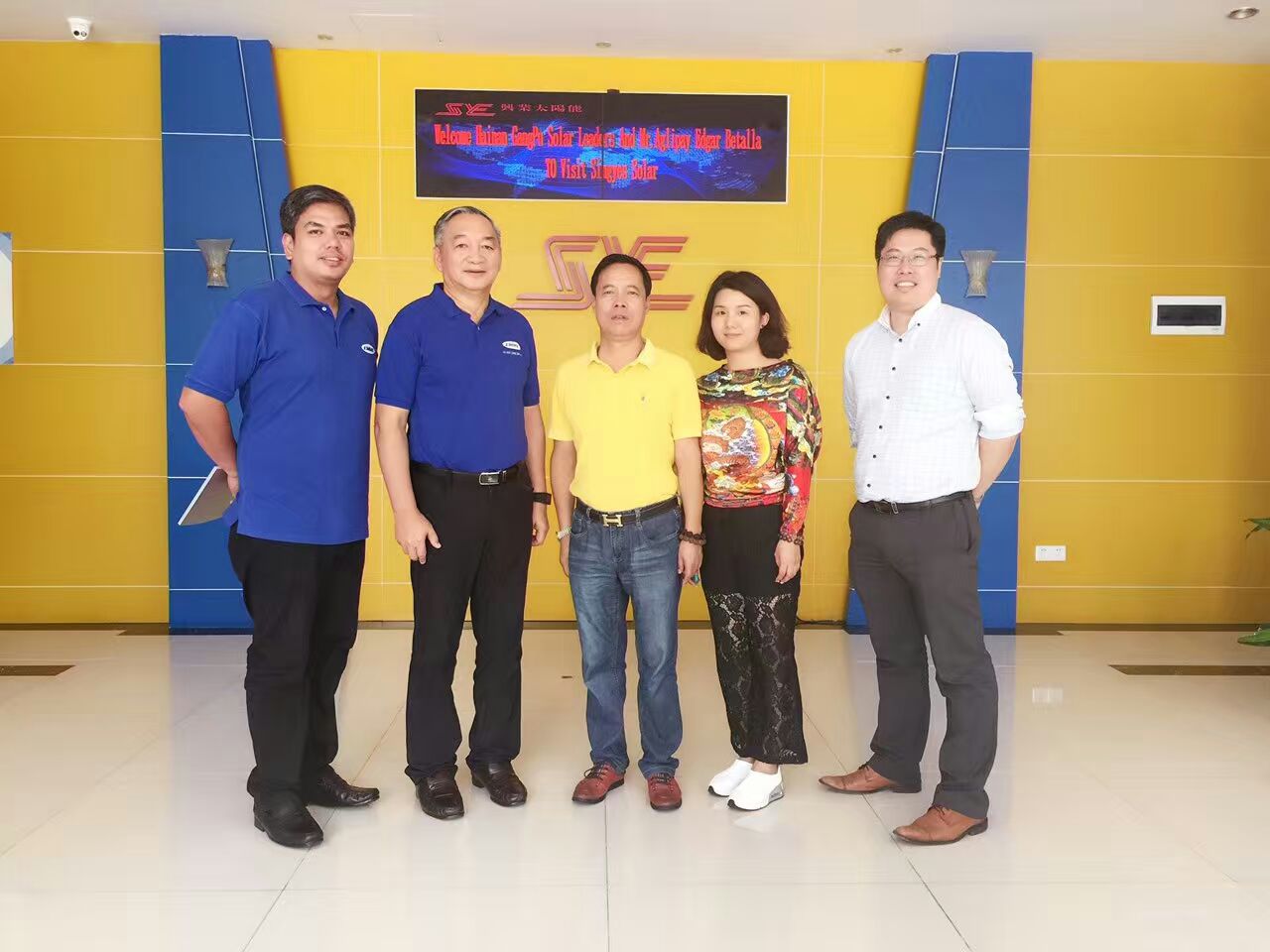 2016年7月28日,我(wo)司董(dong)事長寧家(jia)川先(xian)生陪同菲律賓將軍一行人在(zai)我(wo)國考(kao)察(cha)太陽能產業市場,考(kao)察(cha)團先(xian)后參觀(guan)了珠海(hai)興業公司總(zong)部及(ji)其光伏(fu)、光熱項目。