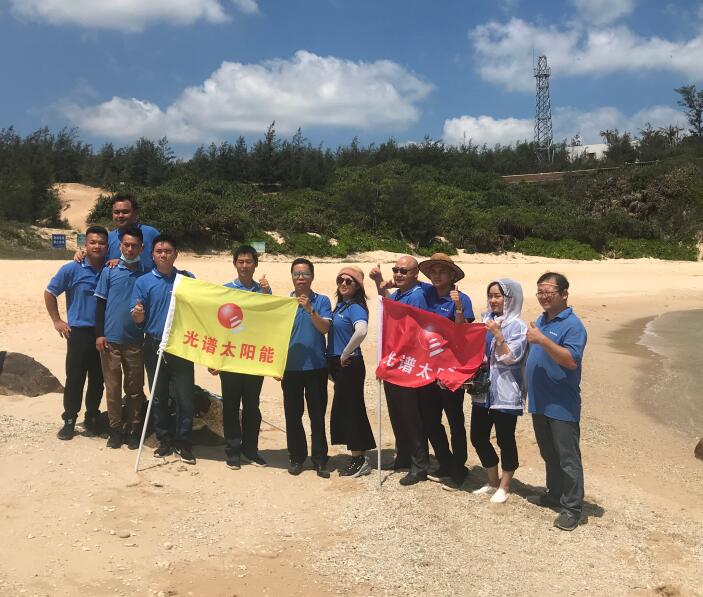 海南光(guang)譜太陽能技術工(gong)程有限公司在文昌(chang)八門(men)灣景區全體(ti)合(he)影留念