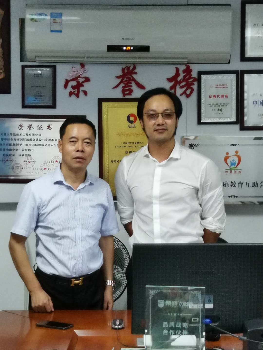 我司人員與廣東(dong)光(guang)伏(fu)發電(dian)廠商潘董事長(chang)進行積極(ji)、融洽的交流,潘董事長(chang)對(dui)我司未來的發展規劃給(gei)予了肯定和贊揚(yang)。