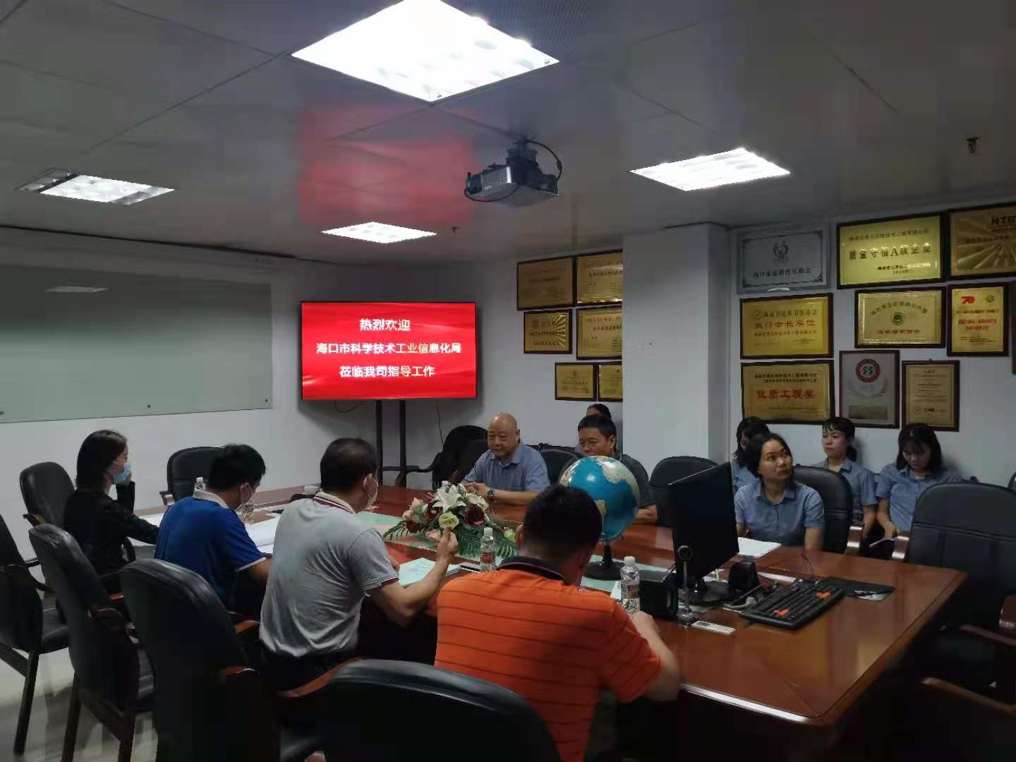 2021年8月19日下午,海口市科學技術工業信息化局專家組一行四人蒞臨我司,對我司申報的科技計劃項目進行現場審核指導,我司寧董事長及各部門人員對專家組的到來表示了熱烈的歡迎。