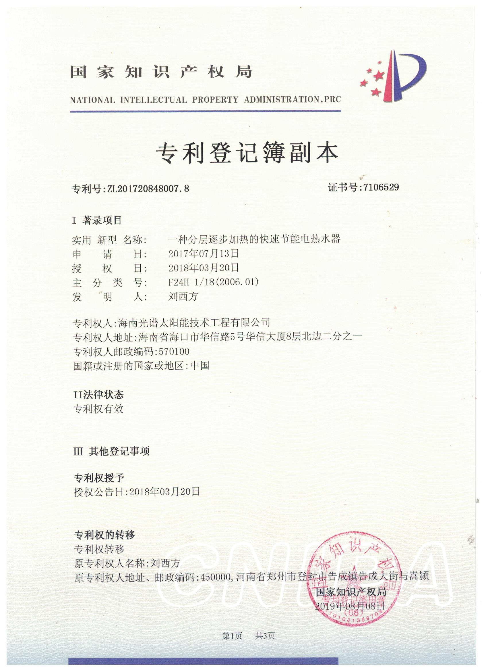 實用新型專利 一種分層逐步加熱的快速節能電熱水器